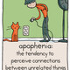 Apophenia, the human tendency to see patterns in random things illustrated by Grant Snider (one of a series of random words comics).