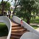 A bridge made from 3D-printed wedge-shaped hollow concrete blocks held together by gravity and compression—no mortar or reinforcement required