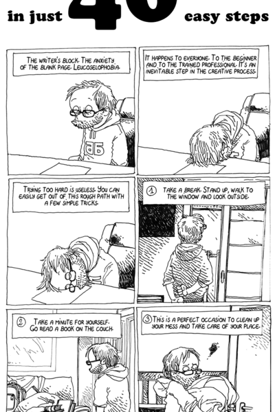 How to defeat writer’s block in 40 easy steps. Blog comic by Boulet http://english.bouletcorp.com/2017/03/05/writtersblock/