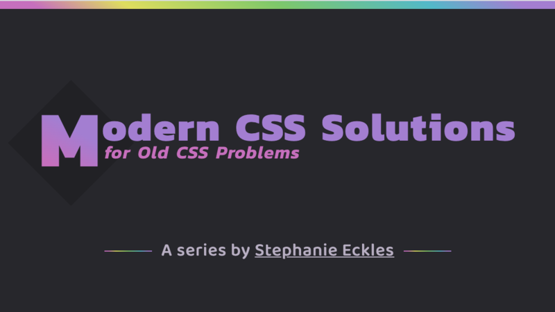 Tutorials about new features of CSS aimed at people already experienced with CSS (Via @terriblemia on Twitter) Modern CSS Solutions A series examining modern CSS solutions to problems Stephanie Eckles (@5t3ph), a seasoned frontend developer, has been solving for 13+ years.