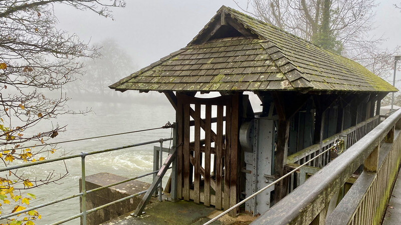 It was cold and foggy for my morning bike ride on Friday so I took some snapshots around and about Iffley Lock. Here's one of the sluice/bridges; click through for more.