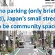 Noted by Damian Cugley .Car parking in Japan is organized differently to how we are used to it in the UK. It gives their narrow streets a completely different character.