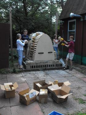 Building a catenary-arch soda kiln. A catenary is the optimum shape for a self-supporting brick arch and hence the basis of a free-standing brick kiln.