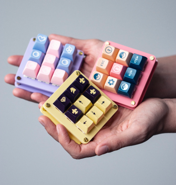 Cute 3×3 macropad kit. [3×3] Macropad [Full Kit] This Macropad is designed to work together with the 40percent.club ‘s NEIN pcb. [FREE SHIPPING] In this kit you will find: Acrylic Plates Brass Hardware silicon bumpon feet NE…