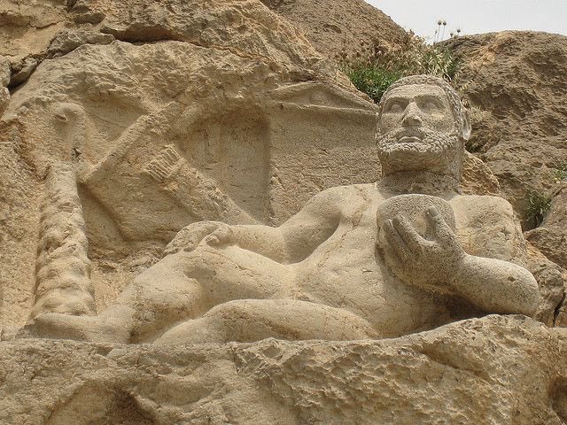 Statue of Hercules at the foot of Mount Bisitun in Iran.